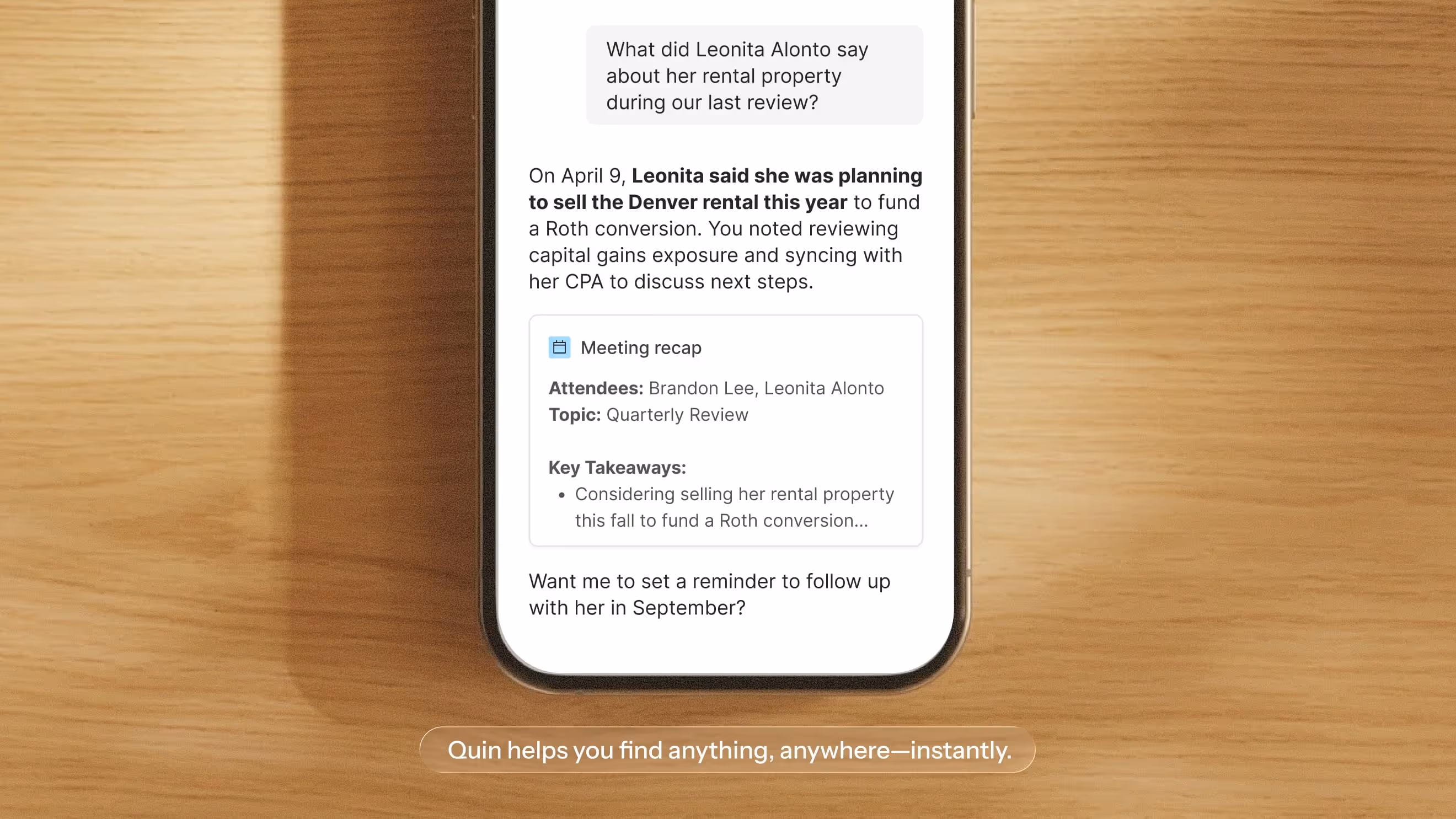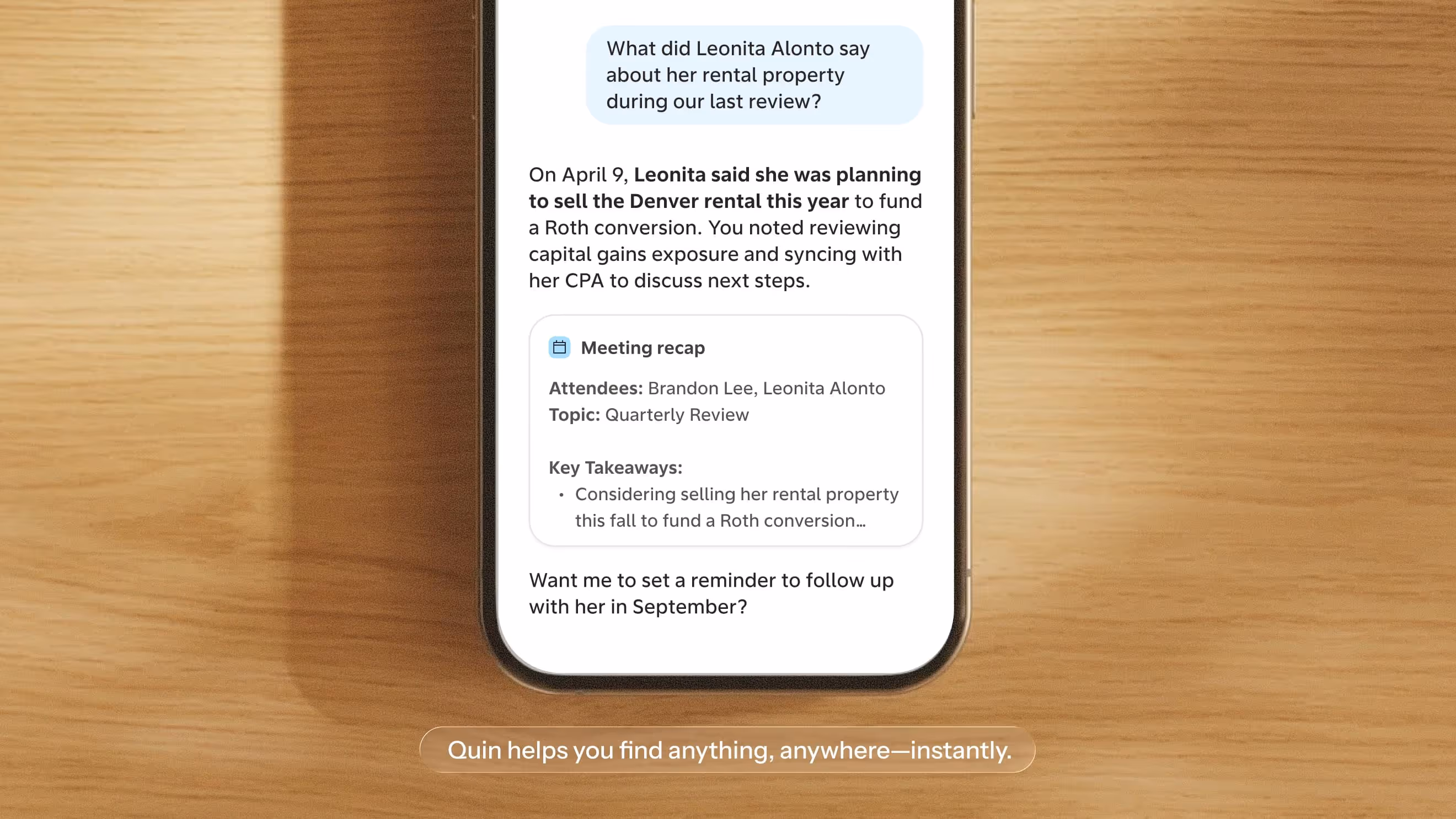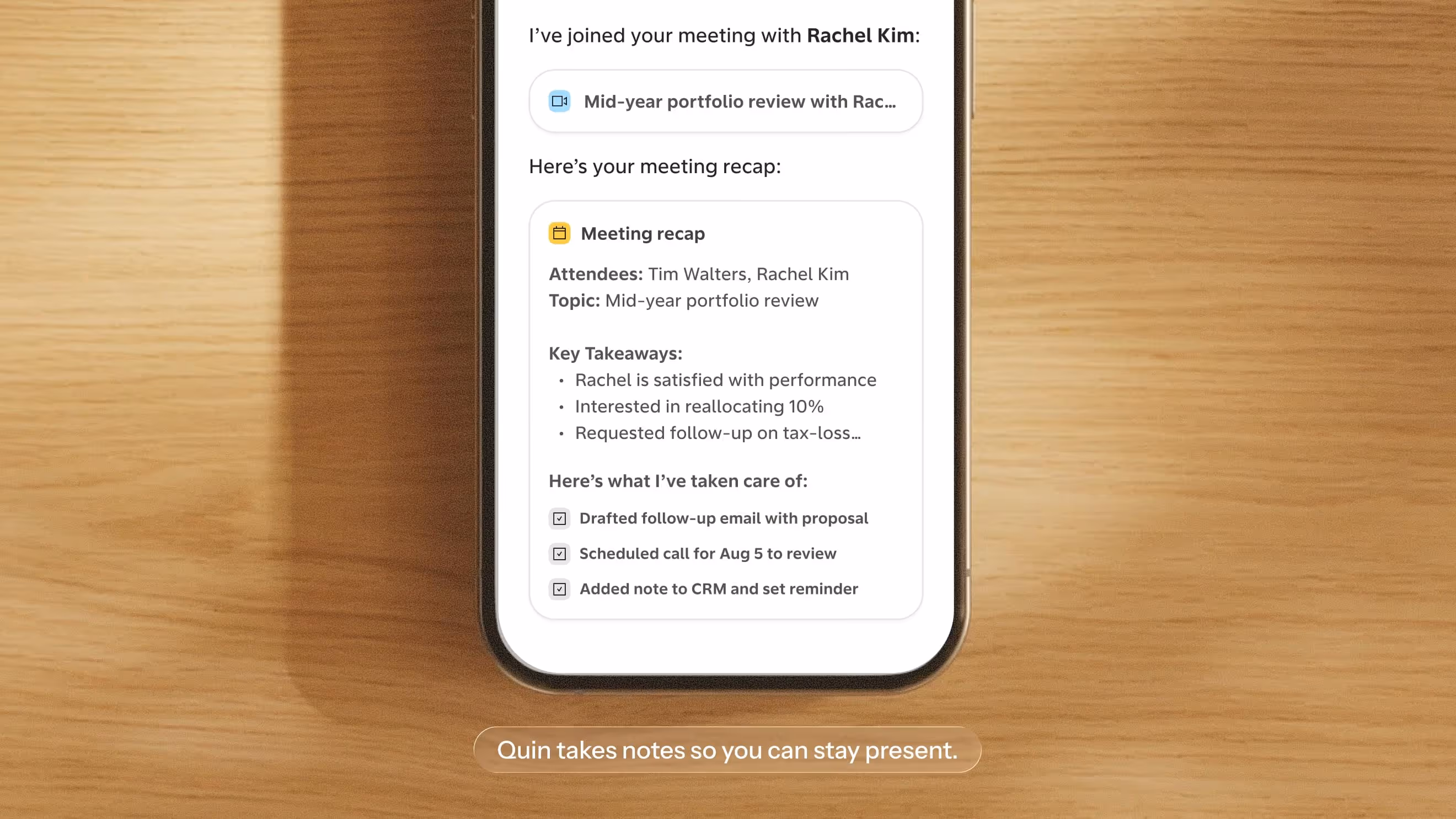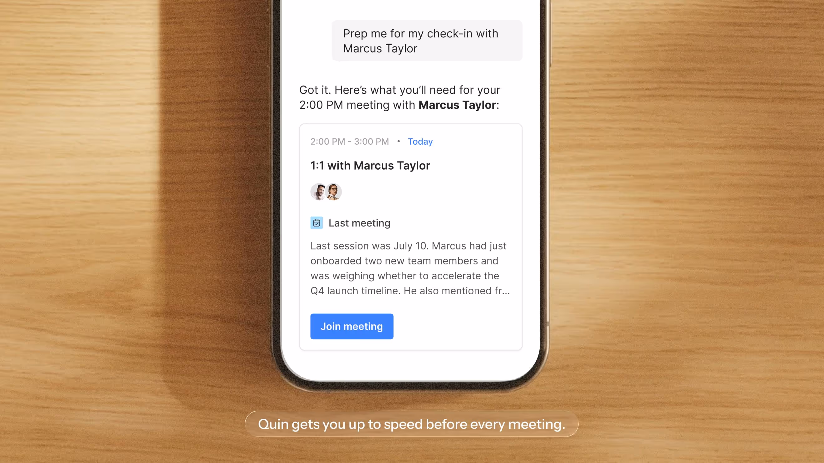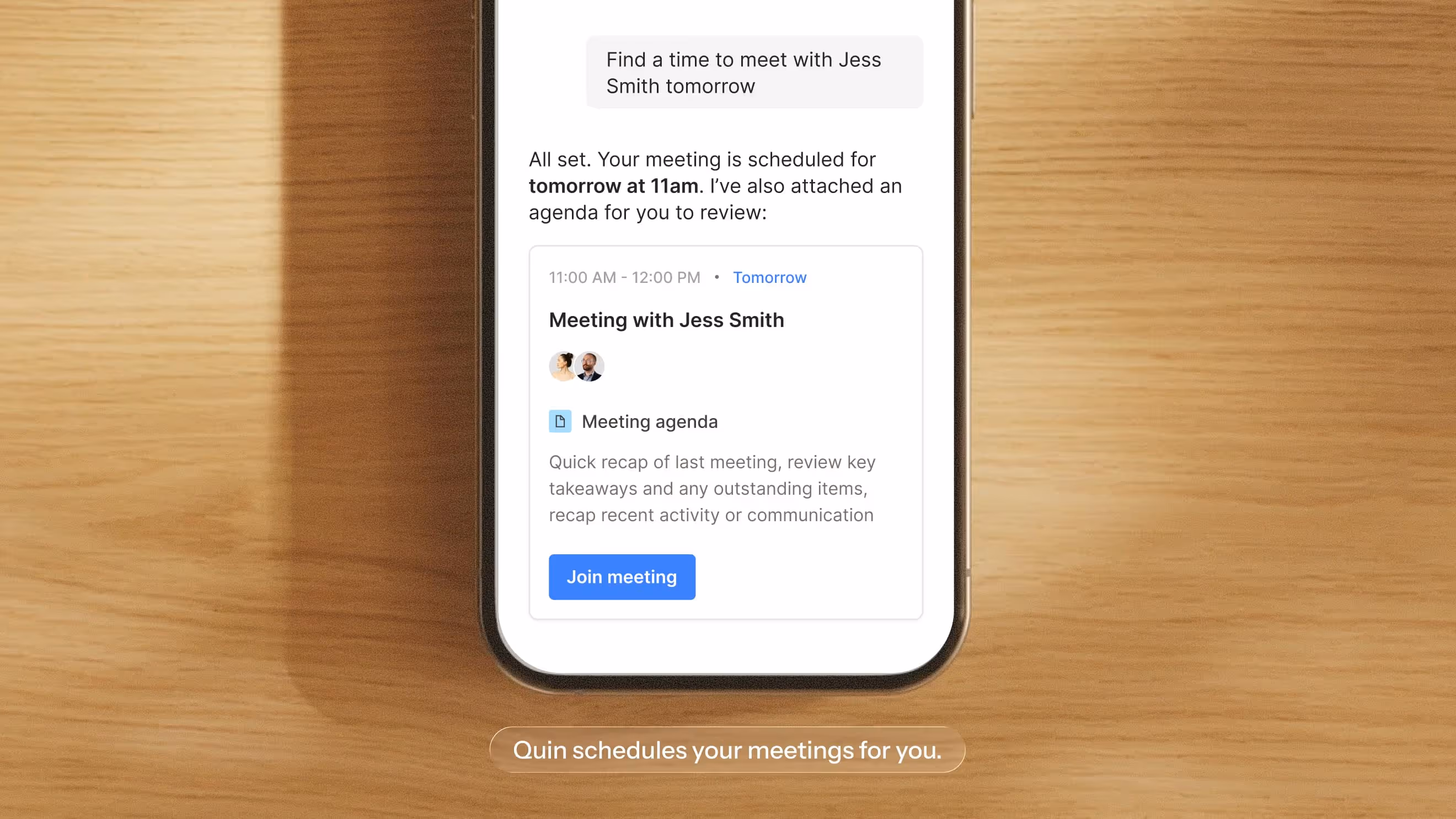 Quin handles everything a great assistant would—follow-ups, scheduling, data entry, and task coordination—across your entire day, not just meetings.