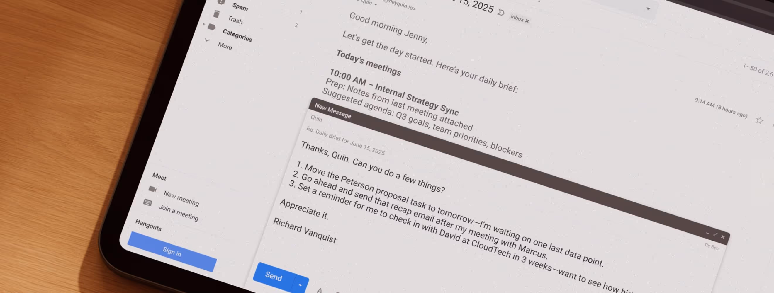 Quin learns your preferences and handles tasks the way you would, keeping everything organized without the extra effort.