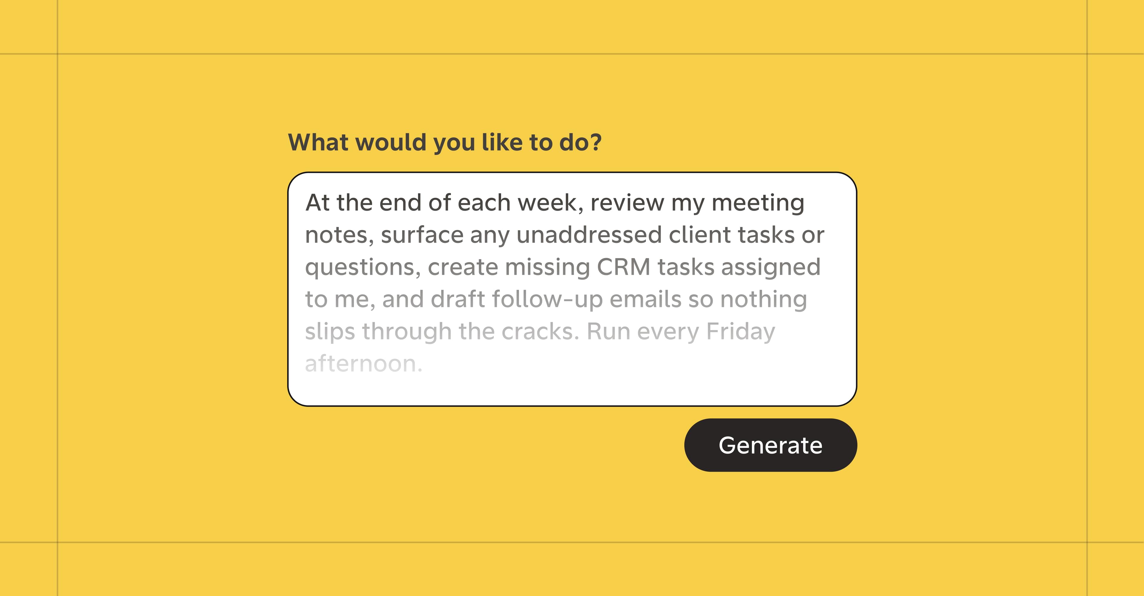 Choose something you do regularly but find tedious—reviewing opportunities, prepping for meetings, tracking birthdays, checking what's overdue.