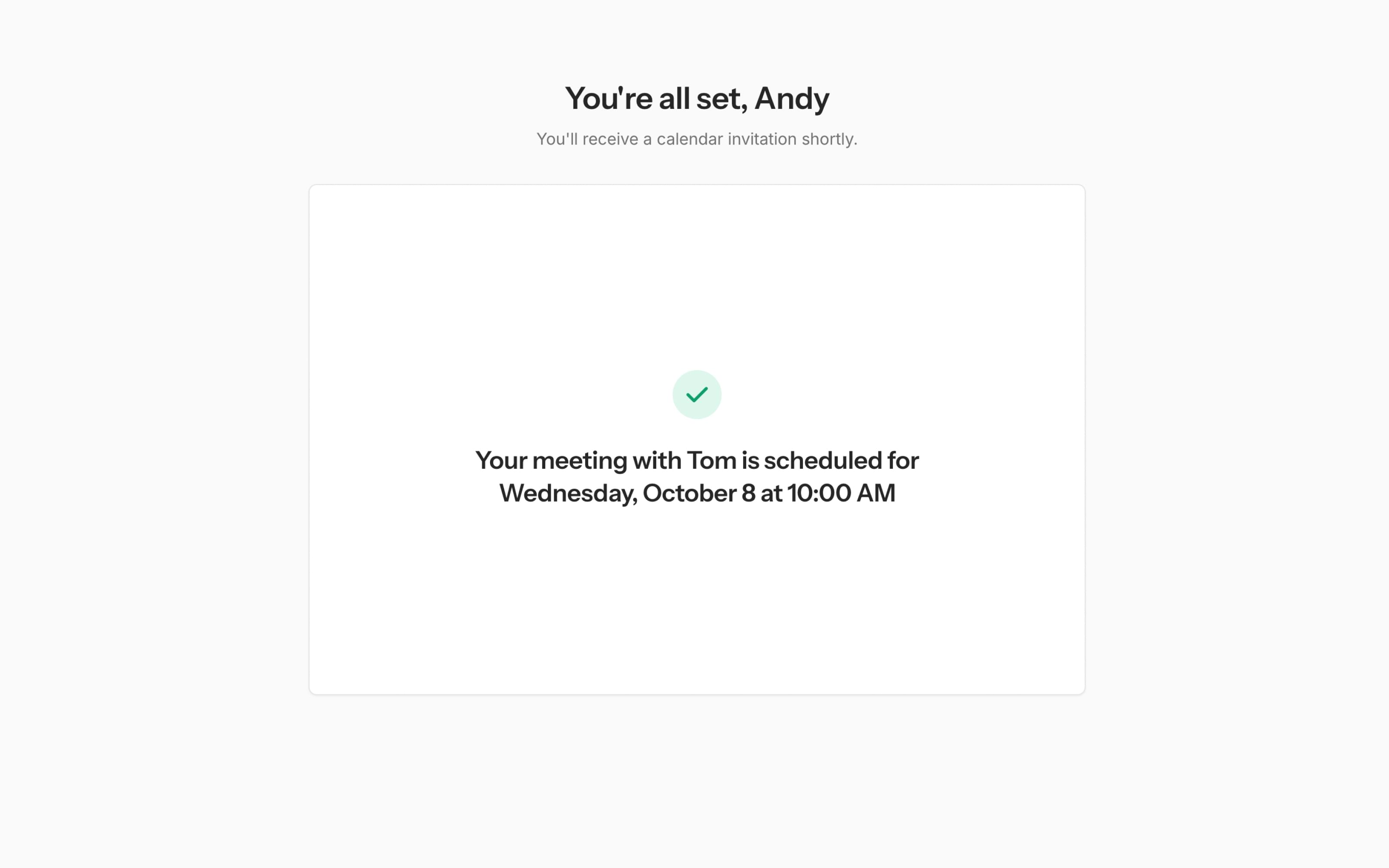 Instead of sending the same generic booking page to everyone, Quin creates personal scheduling links tailored to each contact. Their name shows up in the greeting, and any details you already know are pre-filled—so the process feels smooth and human, not transactional.